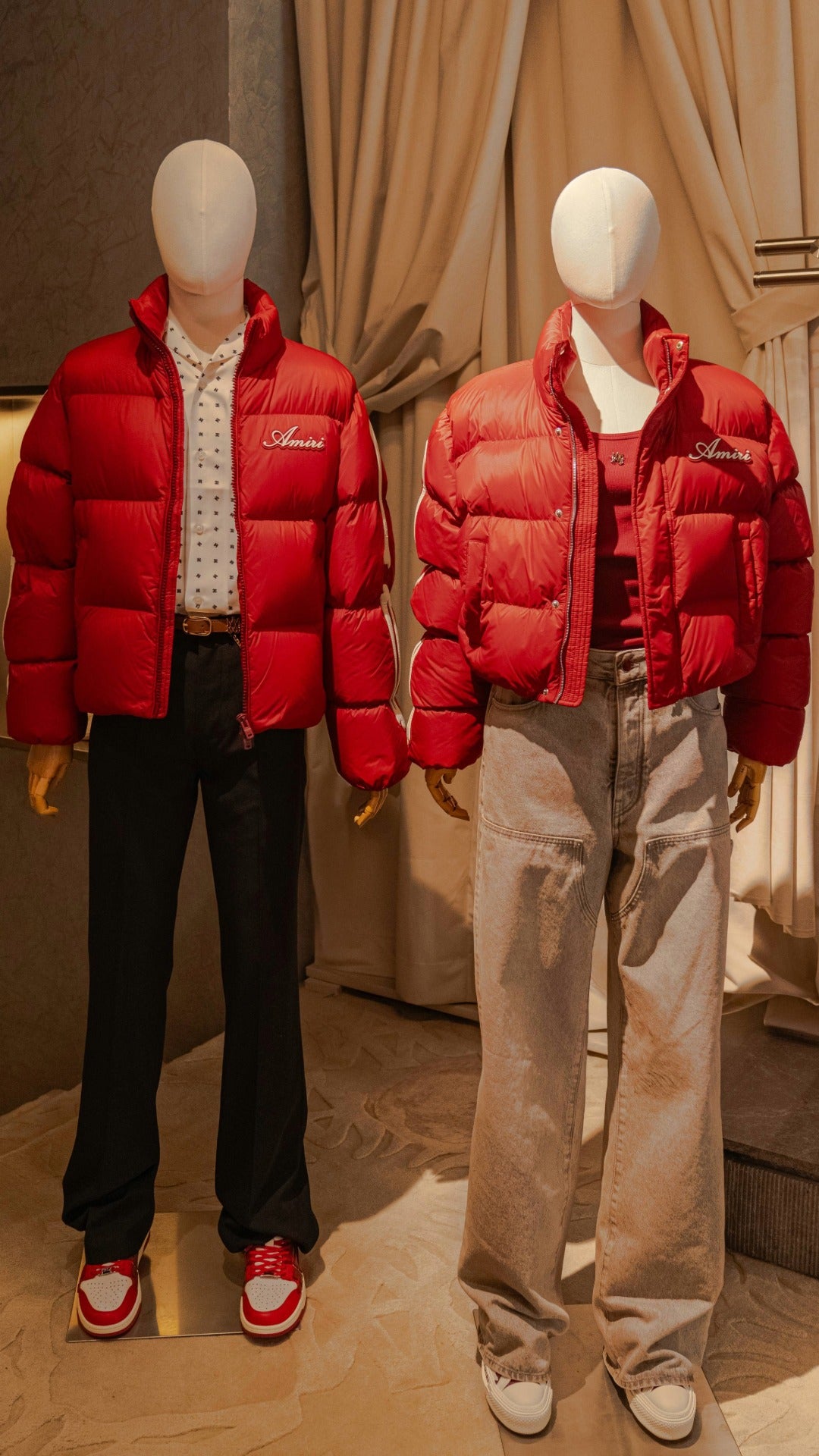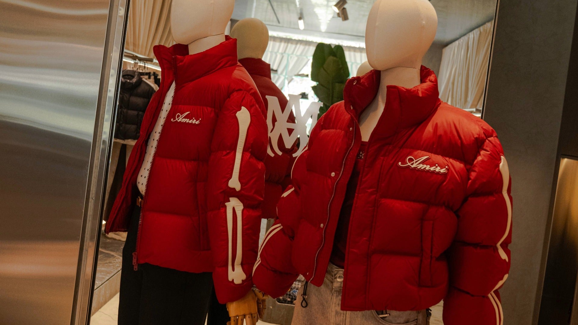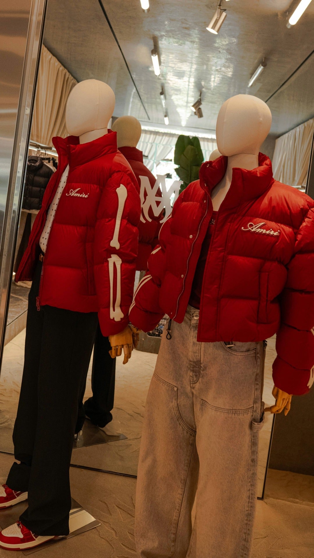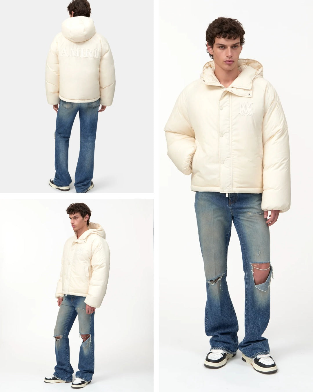 Las puffers de AMIRI moldean la silueta con volumen controlado y acabados premium.