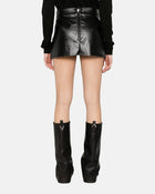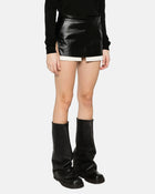 DescripciÜn: Minifalda denim negra con corte _cutoff” y bolsillos frontales planos.
