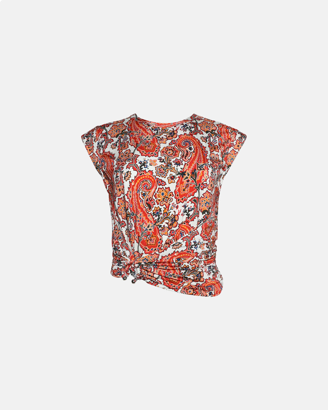 DescripciÜn: Blusa cropped con print cachemira, hombreras y argolla met_lica; sensualidad setentera. :contentReference[oaicite:10]{index=10}