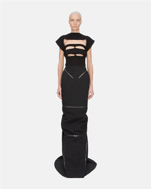 DescripciÜn: Falda sastre negra de lnea columna con cintura limpia y cada pesada.