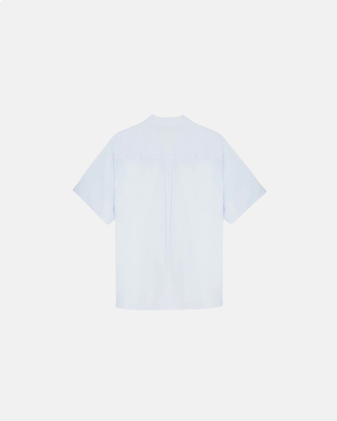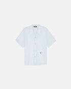 DescripciÜn: Camisa boxy de popelina con cuello cubano y bordado LC rojo: vibra retro para jet-setters sin reglas.