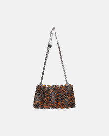 DescripciÜn: 157 discos de resina efecto carey ensamblados a mano; cadena ajustable para mano u hombro. :contentReference[oaicite:12]{index=12}