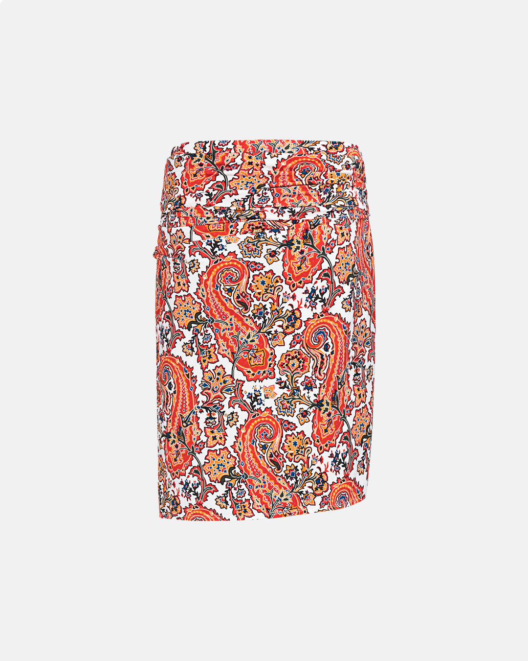 DescripciÜn: Falda larga drapeada con estampado cachemira y anilla met_lica en la cadera. :contentReference[oaicite:2]{index=2}