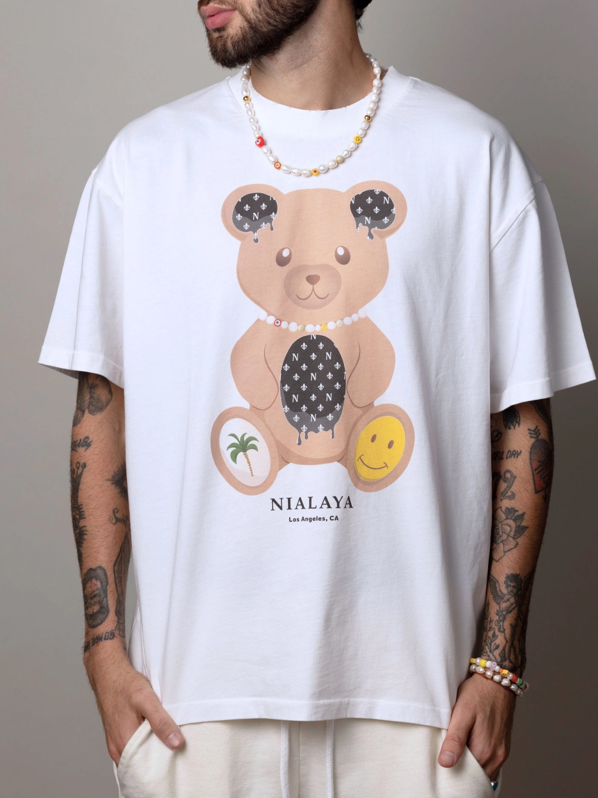 Nialaya LA Happy Bear Tee in White