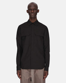 DescripciÜn: Camisa utilitaria con bolsillos planos y estructura limpia en negro profundo.
