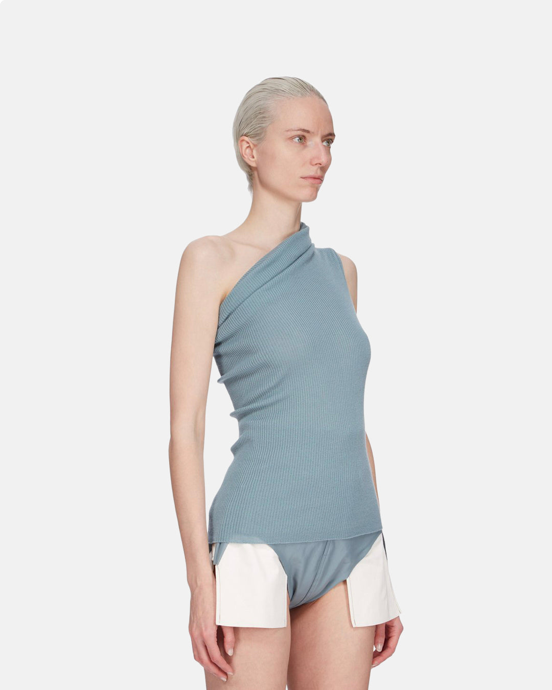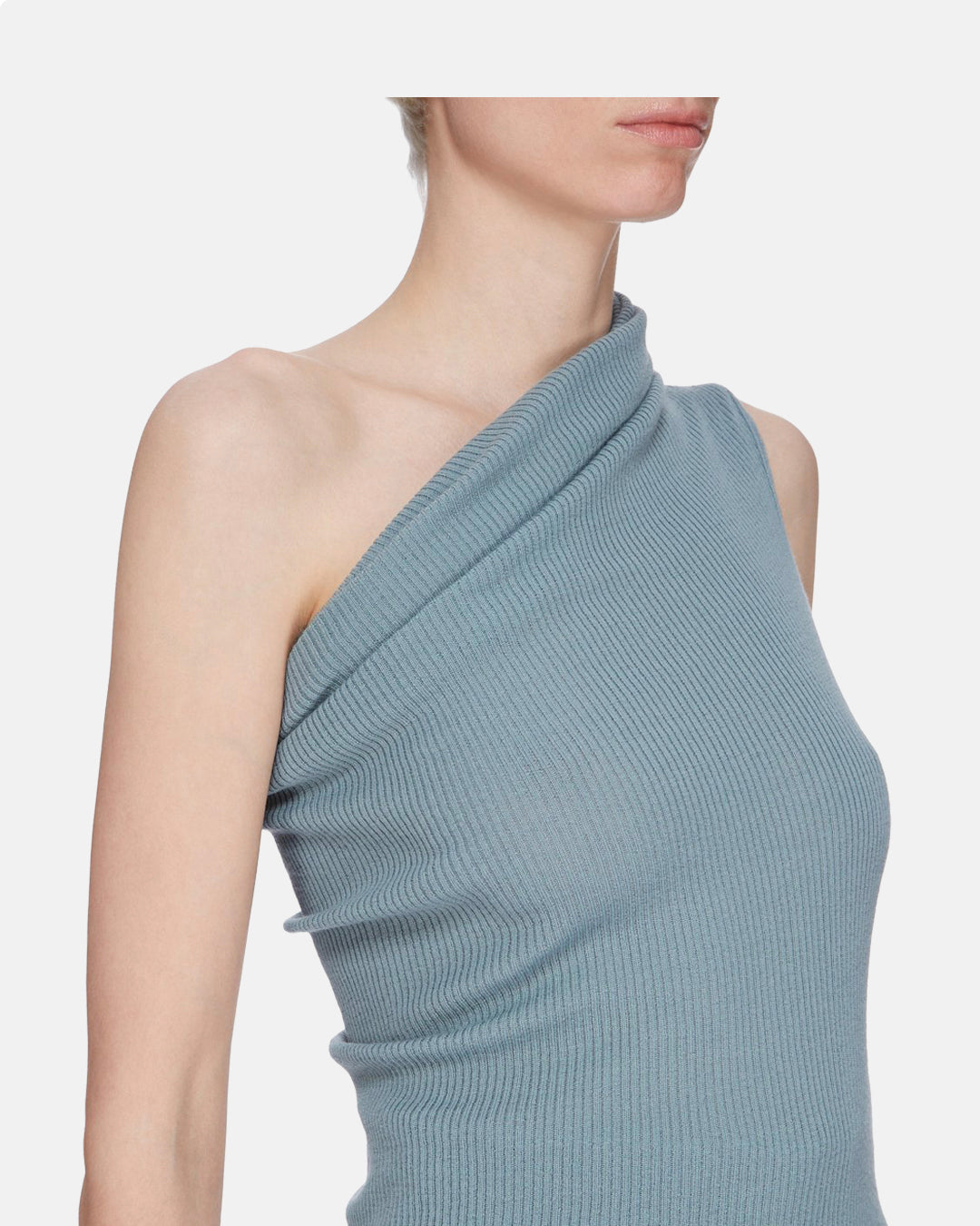 DescripciÜn: Top de punto asim_trico con drapeado suave; color Mouthwash.