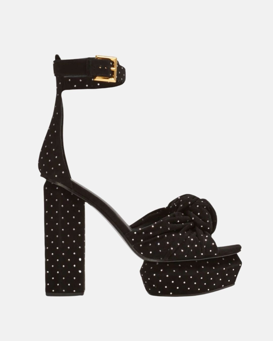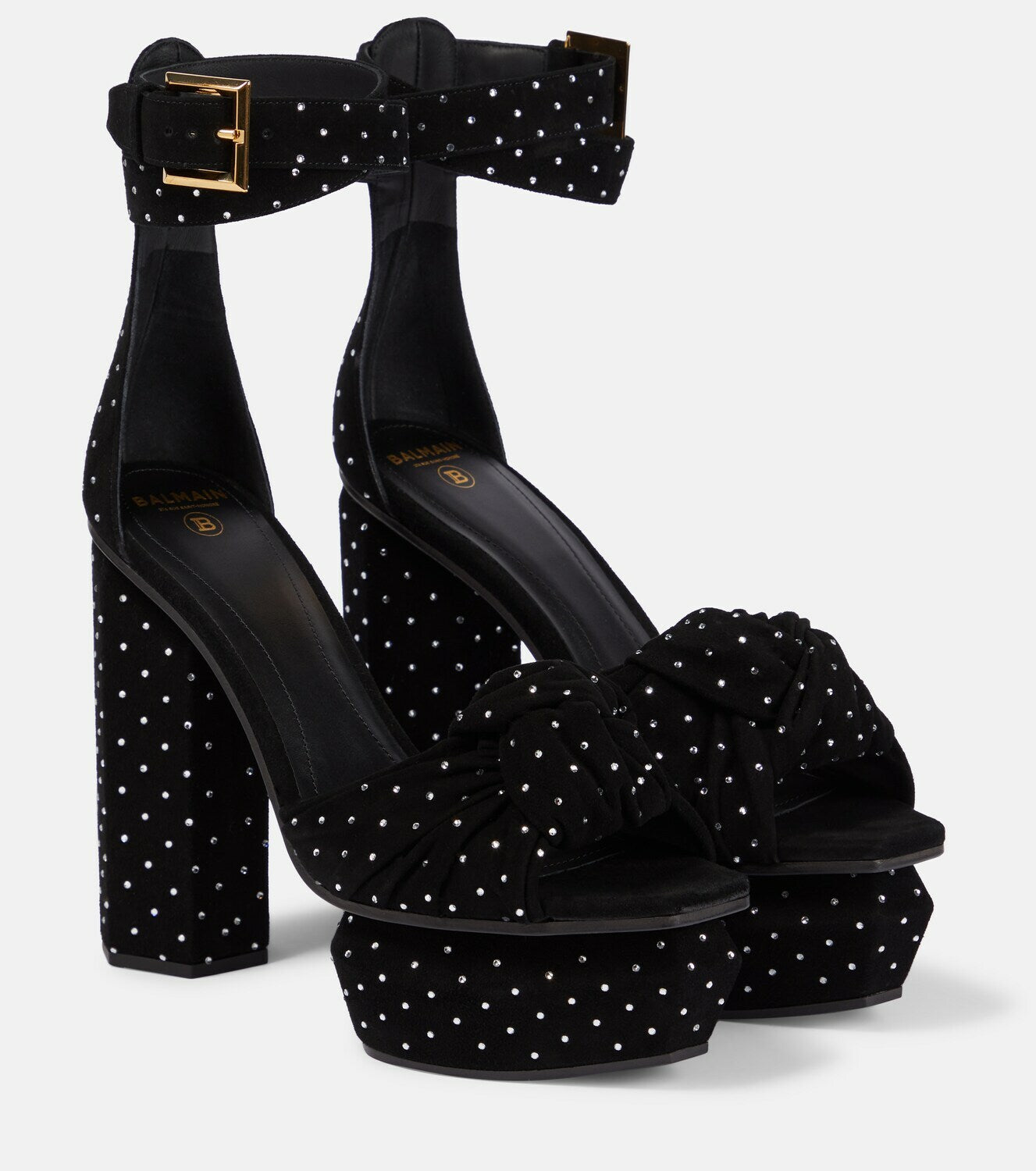 Balmain Women Ava Suede And Crystal Platform Sandals Black