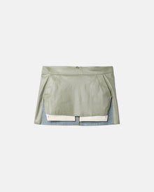DescripciÜn: Minifalda denim con dobladillo deshilachado y bolsillos utilitarios; Celadon.