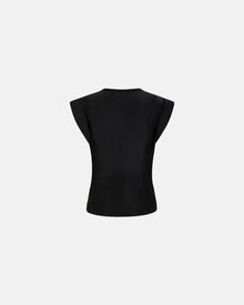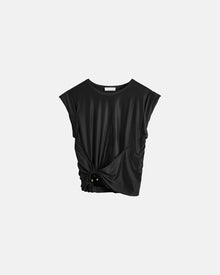 DescripciÜn: Top jersey negro cropped con anilla met_lica en escote, sello Rabanne.