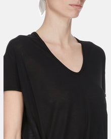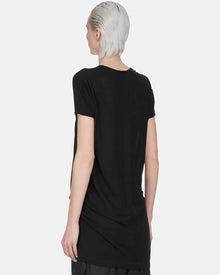 DescripciÜn: Camiseta con dobladillo escalonado y costuras expuestas; negro profundo.