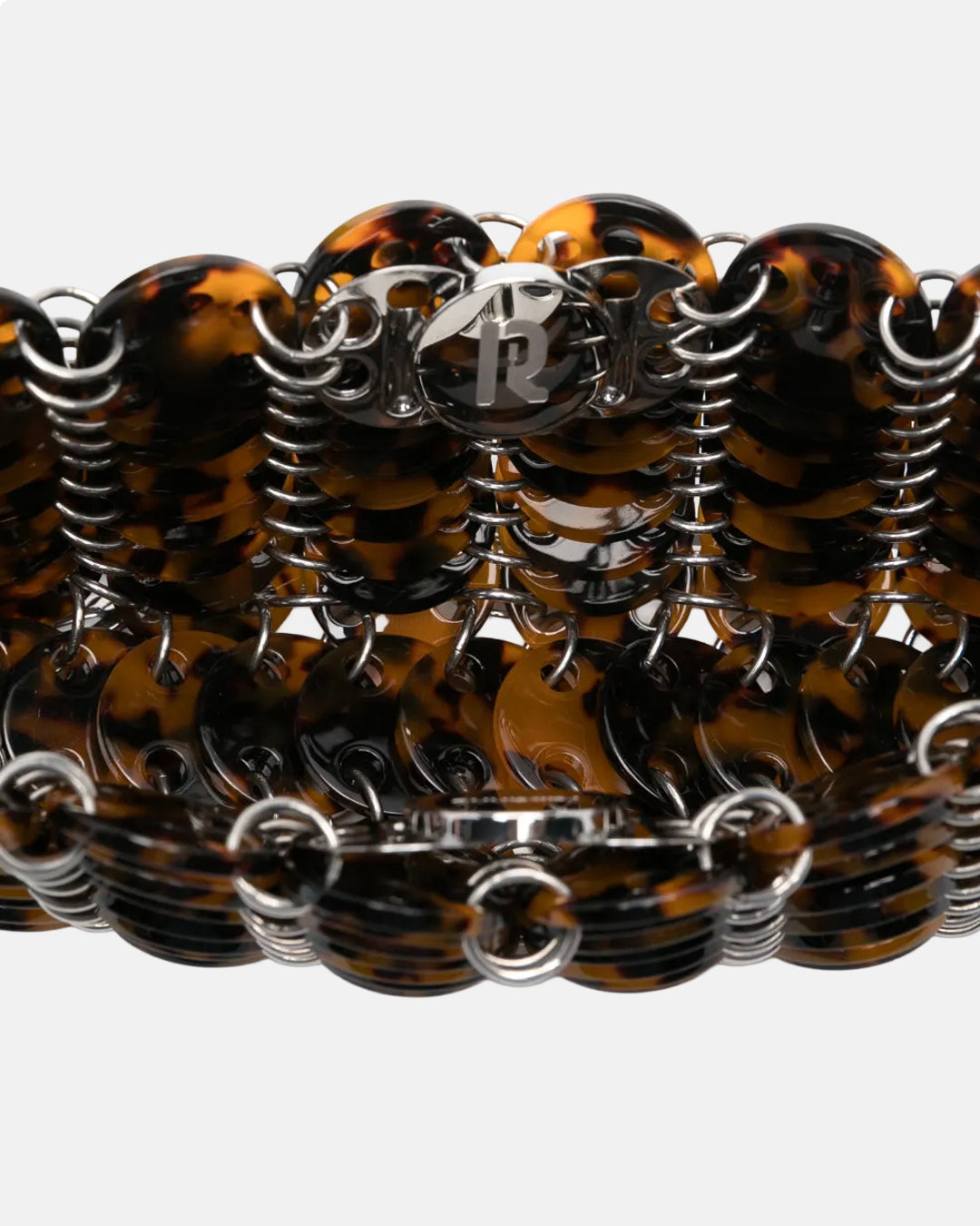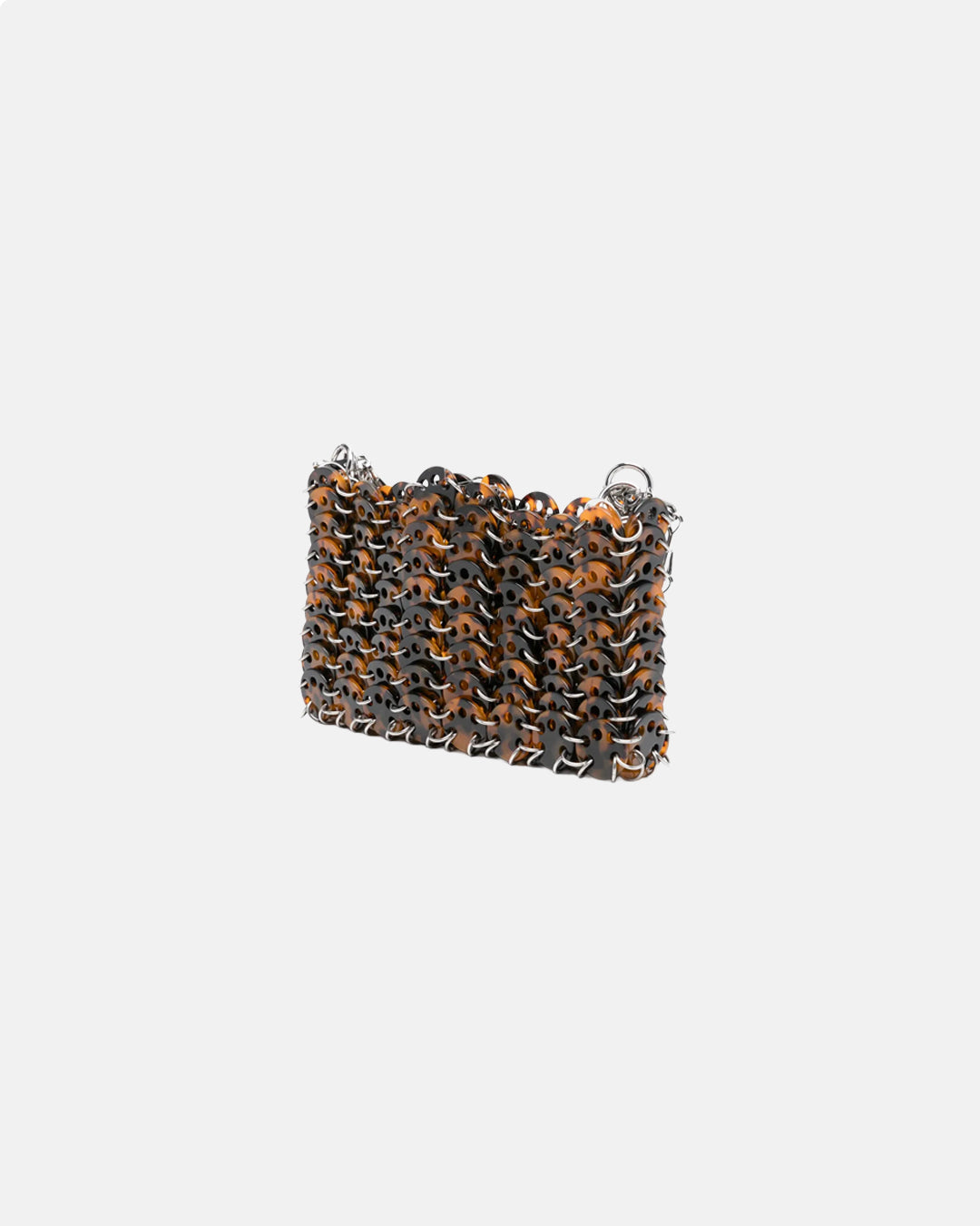Descripci—n: Bolso nano tejido a mano con discos met‡licos cobre; gui–o a la estŽtica pionera de 1969. :contentReference[oaicite:0]{index=0}