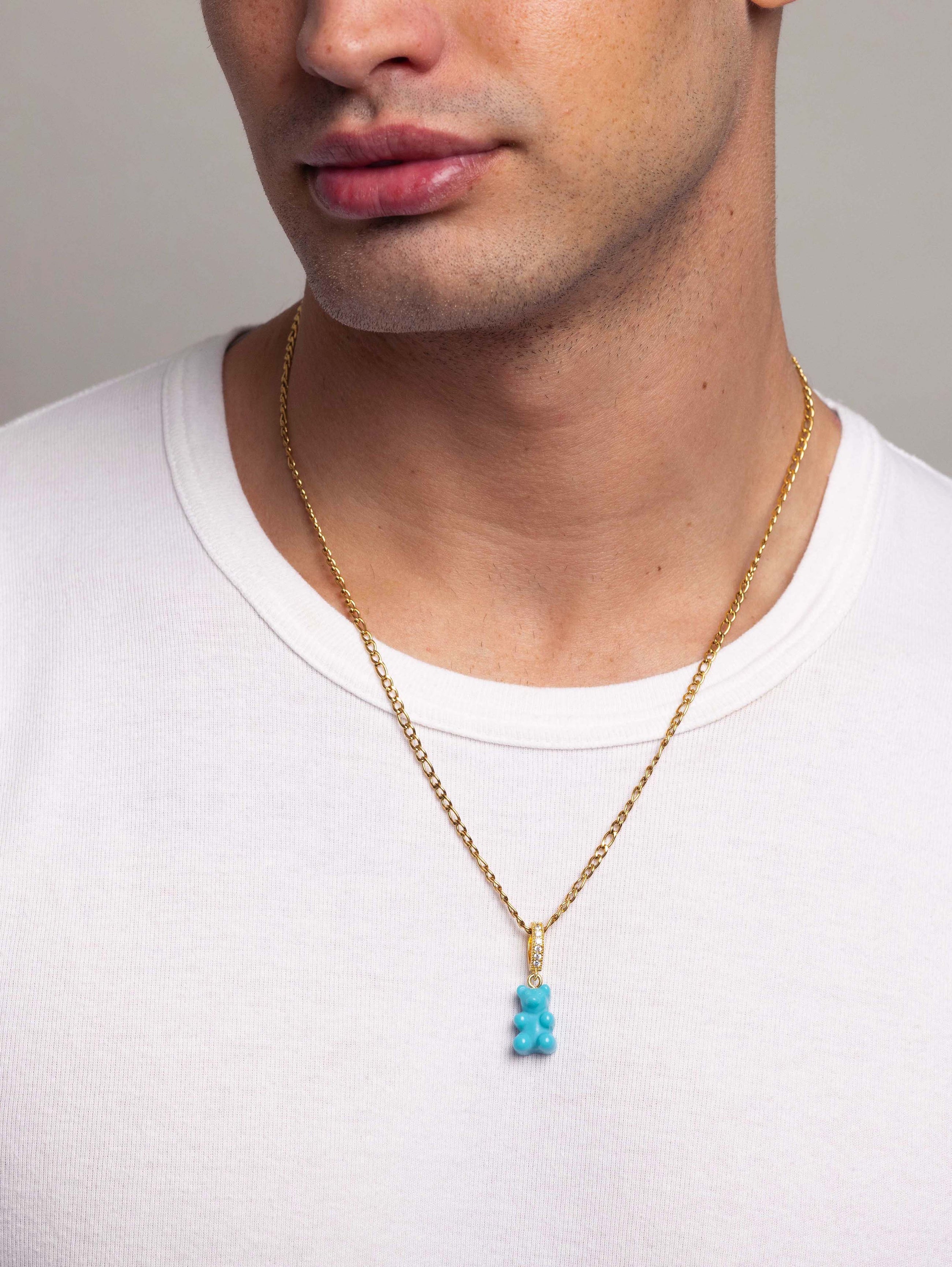 NIALAYA Men's Gold Turquoise Gummy Bear Necklace
